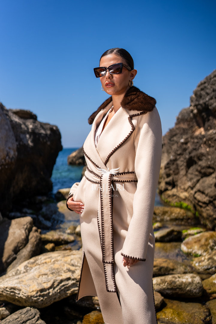 Alpaca Fabric with Mink Fur, Embroidered Details, and Belt -3991-