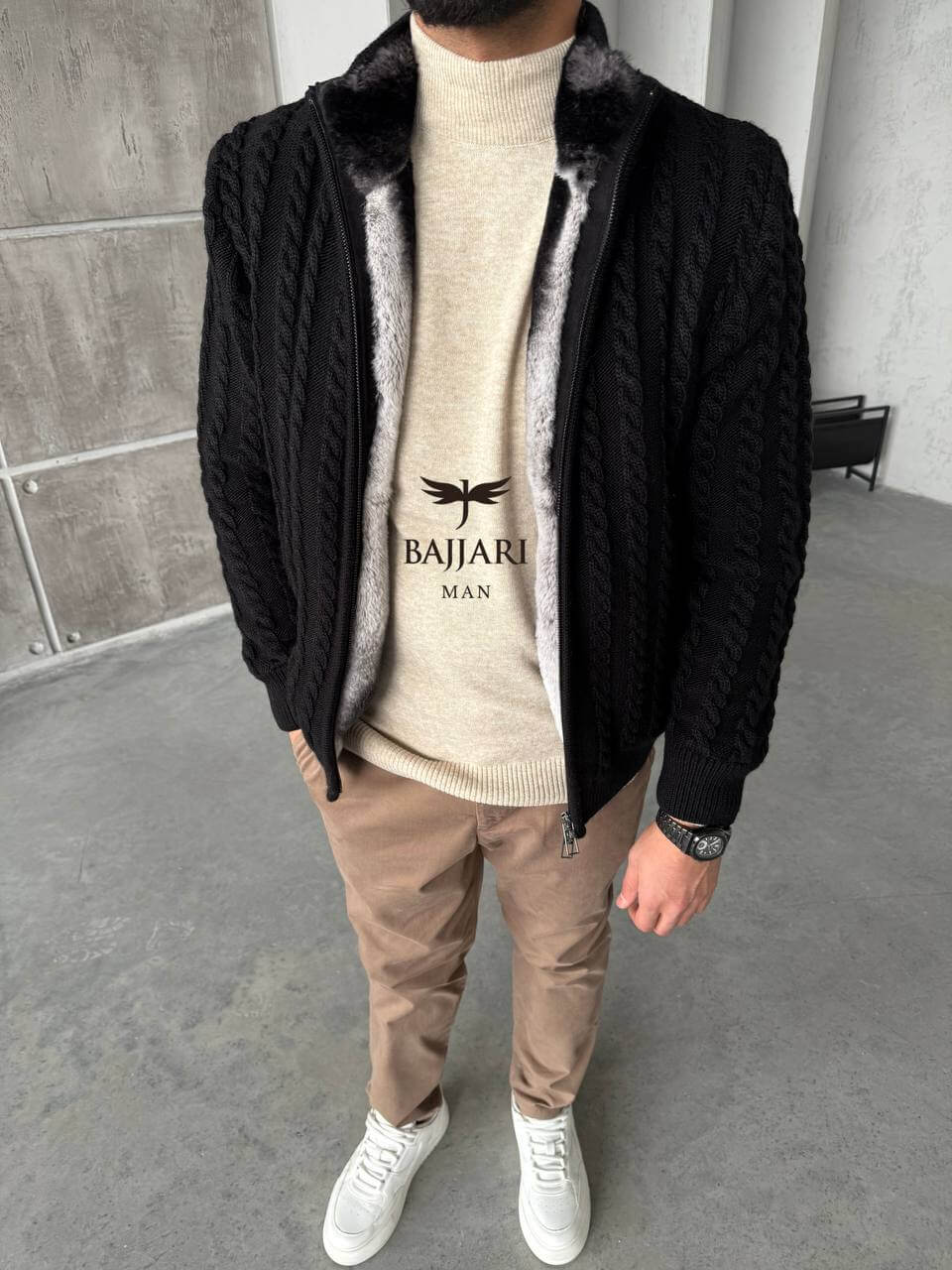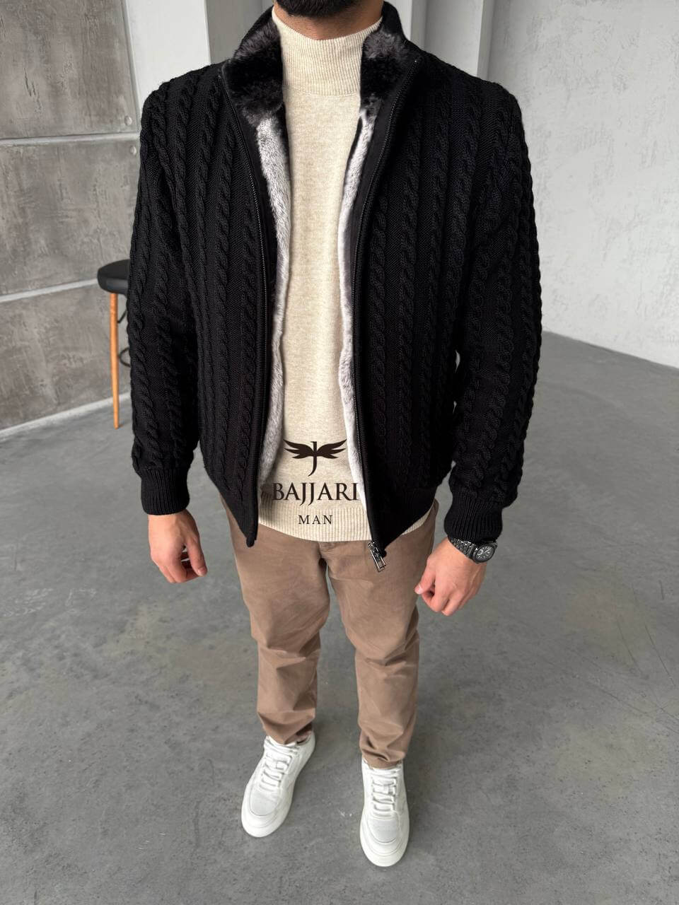 Cashmere Knit & Rabbit Fur Men’s Jacket