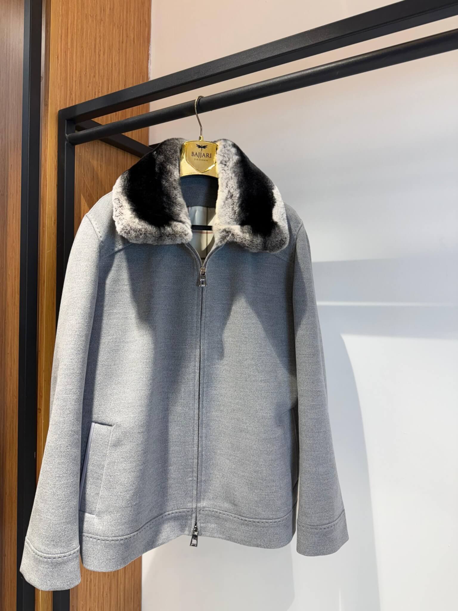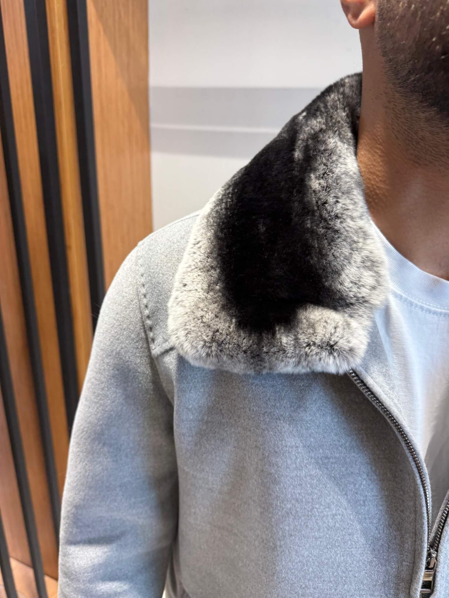 Men’s Cashmere Jacket with Rex Fur Lapel