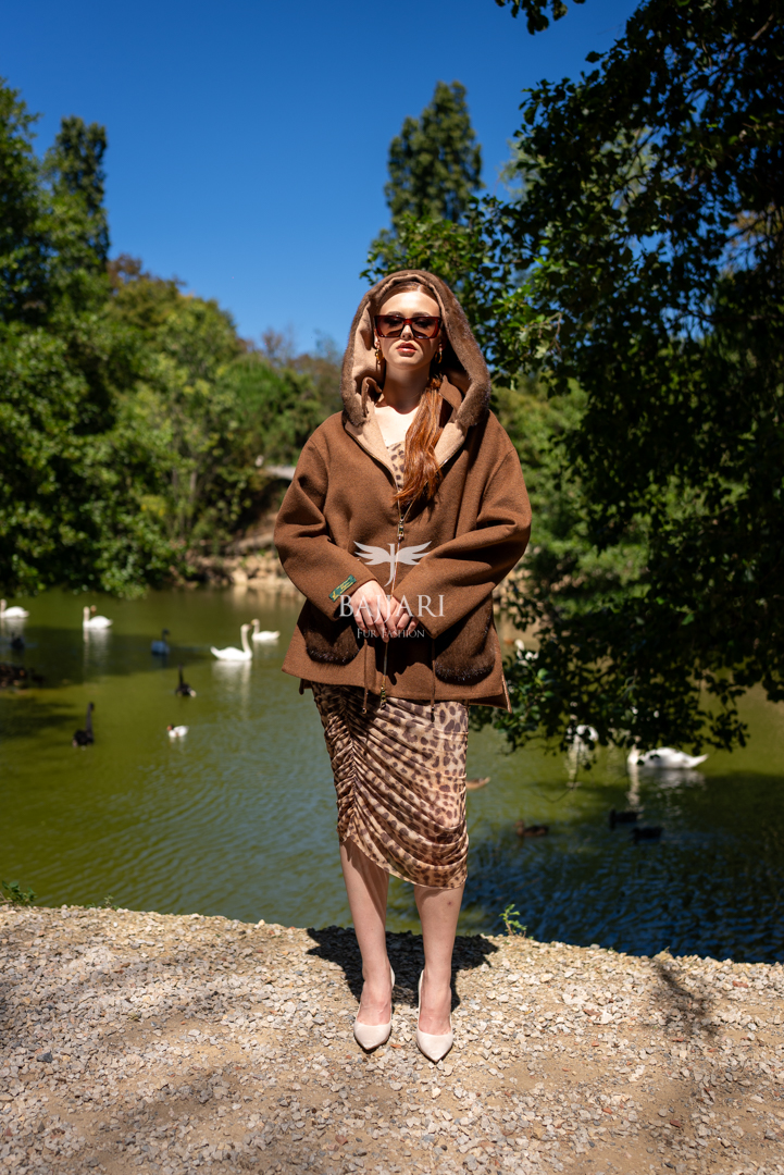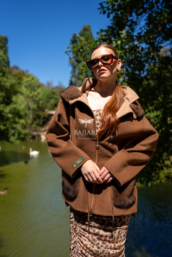 This exclusive design coat combines luxury and elegance with its premium alpaca lama fabric and mink fur details. The 100% mink fur on the hood front and pockets adds a sophisticated touch, while the high-quality fabric ensures comfort. Each piece is produced in limited quantities.